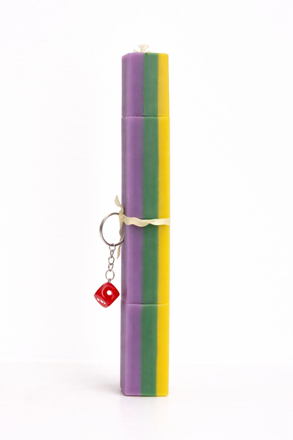 Μια ξεχωριστή χειροποίητη λαμπάδα που συνδυάζει design και παιχνιδιάρικη διάθεση. Σε μοντέρνο γεωμετρικό σχήμα και τρεις αποχρώσεις του epitrapez.io (κίτρινο, πράσινο και μωβ), αποτελεί την ιδανική επιλογή για όσους αγαπούν τα ιδιαίτερα αντικείμενα. Το διακοσμητικό ζάρι σε έντονα χρώματα δίνει έναν fun χαρακτήρα, εμπνευσμένο από τον κόσμο των επιτραπέζιων, ενώ το γλυκό άρωμα strudel δημιουργεί μια ζεστή και απολαυστική ατμόσφαιρα στον χώρο.