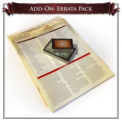 Booklet, cards and player aids updated with the latest errata and minor changes, for owners of the 1st and 2nd printing of Europa Universalis: The Price of Power.