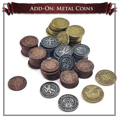 Σετ επίσημων μεταλλικών κερμάτων για να αντικαταστήσετε τα χάρτινα tokens του παιχνιδιού Minos: Dawn of Fate. Περιλαμβάνει 60 κέρματα συνολικά 30 κέρματα αξίας 1 και 30 κέρματα αξίας 5.