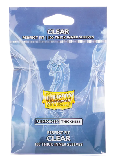 Dragon Shield’s thickest inner sleeves ever: Perfect Fit Thick Inner Sleeves. The reinforced thickness provides even greater protection for treasured cards and easier handling when double-sleeving. They are top-loading and fit smoothly inside regular Dragon Shield sleeves – perfect for double-sleeving. Both front and back are Clear, and the sleeves are 100% archival safe (acid- and PVC-free). Each pack contains 100 Standard size Perfect Fit card sleeves for trading cards measuring up to 63 x 88 mm (2½ x 3½). Great for TCGs like MTG, Pokémon, Lorcana & Flesh and Blood!